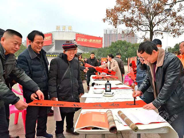 1月13日,市纪委监委联合市书法协会在人民广场开展新春送“廉”活动,20余位书法协会会员现场挥毫泼墨为群众书写新春对联。