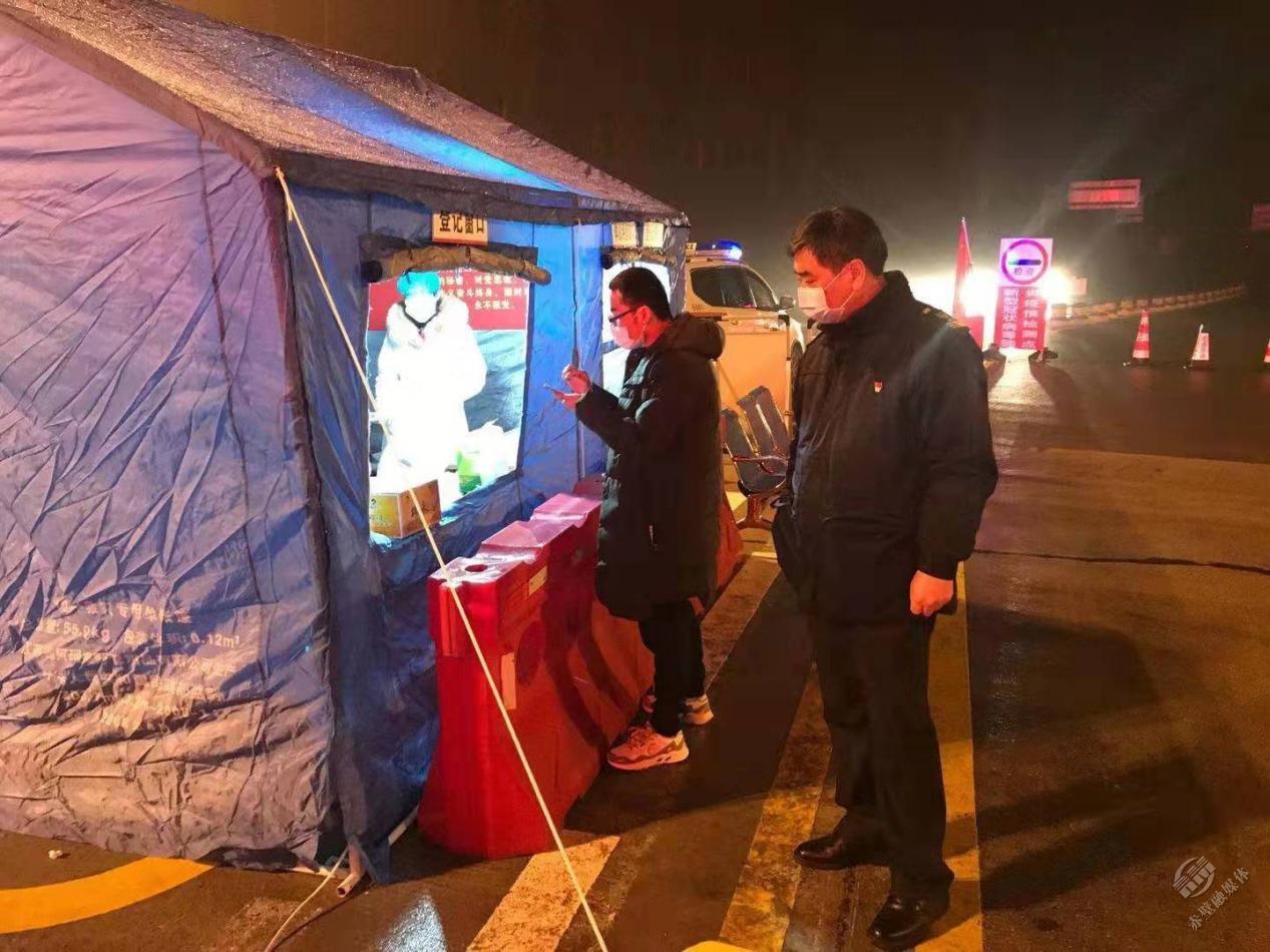 1月22日以来,定贵平就和党员干部一起坚守在抗击疫情的一线,值守登记、搭建帐篷,分配任务,合理调度……干部职工也主动来到检测点参与防控,有的不仅参加值班,还主动担起接送人员上下岗的重任;有的在岗位上坚守整整17个小时,衣服淋湿了,人也疲惫不堪却还是不肯先行退下;有的为了减少过往人员的集中逗留,几乎一天不喝水,只是想节约上厕所的时间;有的中午饭点碰上高峰期,连热菜热饭都吃不上一口……