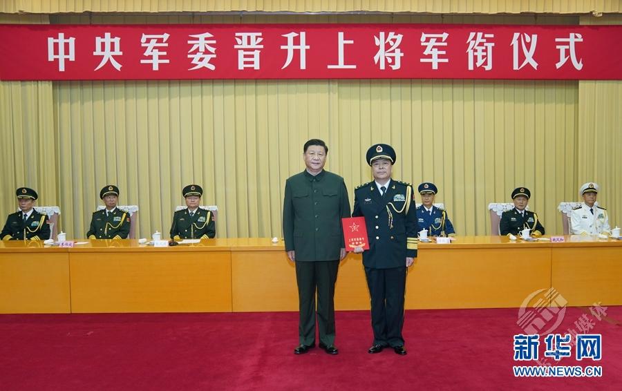 下午4时30分许,晋衔仪式在庄严的国歌声中开始。中央军委副主席许其亮宣读了中央军委主席习近平签署的晋升上将军衔命令。中央军委副主席张又侠主持晋衔仪式。