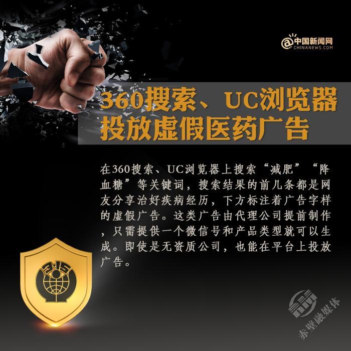 交了钱就能上,记者在UC浏览器和360搜索上进行搜索,果然找到了代理公司制作的这两则虚假广告。
