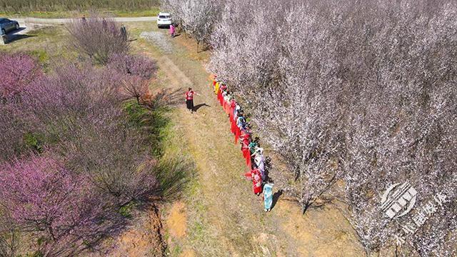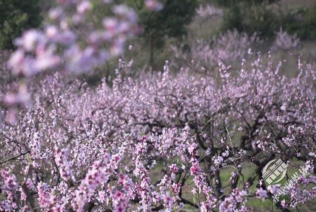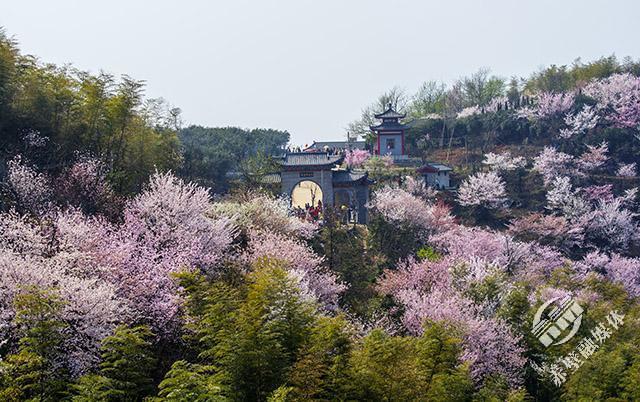 片片盛开的野樱与云雾缭绕的云海连成一体