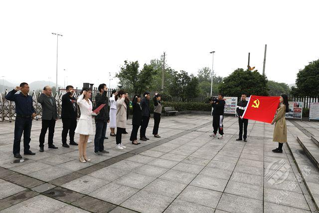 在茶庵岭镇金峰烈士陵园,市融媒体中心党员干部面向革命英雄纪念碑奏唱国歌,在党旗下重温入党誓词,接受思想和精神上的深刻洗礼;在金峰革命历史陈列馆,认真聆听老支书讲述革命英烈事迹,深刻领悟家国情怀,进一步坚定理想信念。