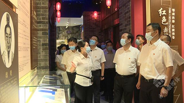董方平、葛军一行怀着无比崇敬的心情,循着中国共产党的光辉足迹,认真聆听讲解,驻足仔细观看,询问相关情况。通过参观学习,对1921年中国共产党诞生以来领导鄂南人民革命和建设中的重大历史事件、重要历史人物和主要发展成就有了更深刻、更系统、更全面的了解。