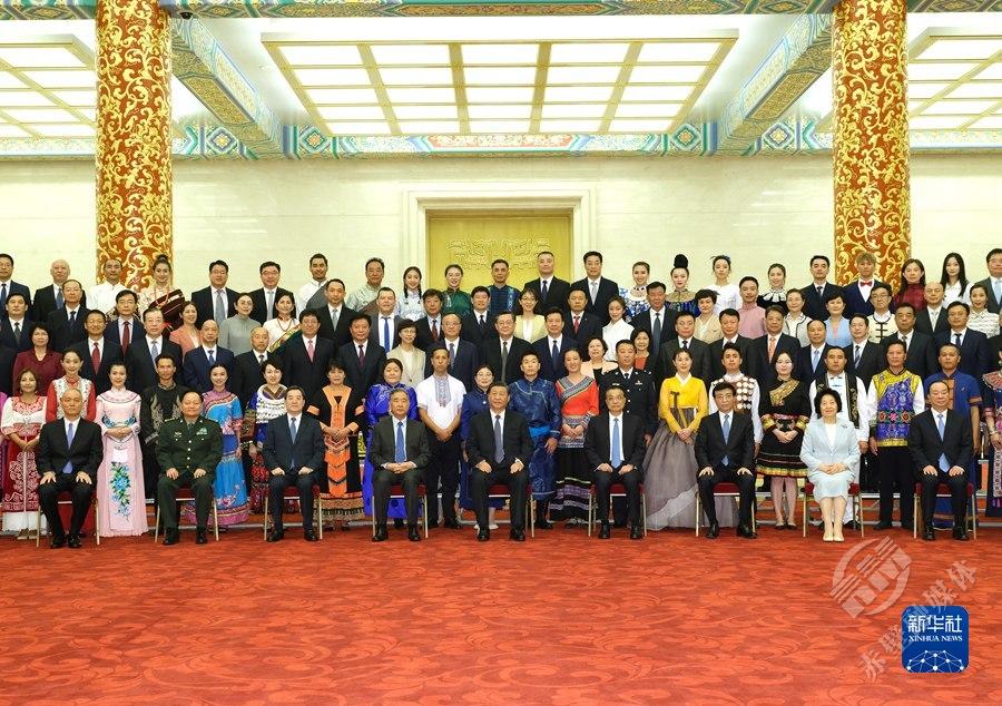 演出开始前,习近平等党和国家领导人会见了文艺会演演职人员代表、组委会成员、56个民族的优秀基层党员代表等,并同他们合影留念。