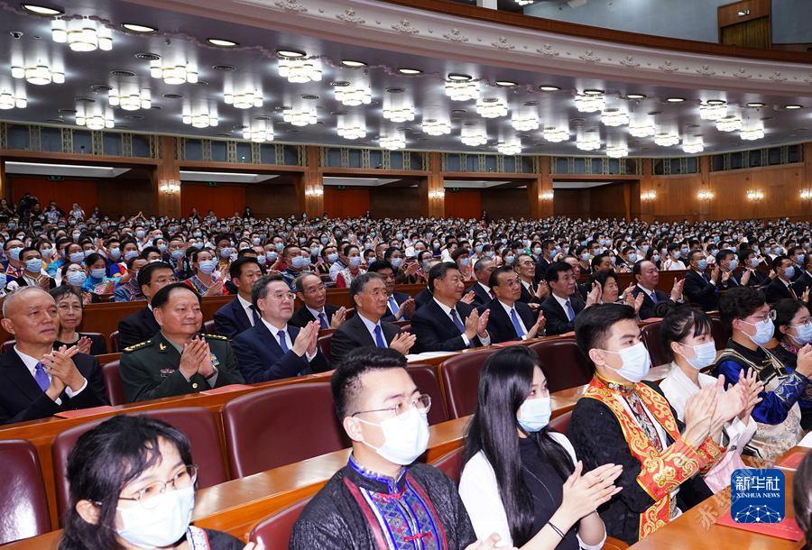 8月31日晚,第六届全国少数民族文艺会演开幕式文艺晚会在北京人民大会堂隆重举行。习近平、李克强、汪洋、王沪宁等党和国家领导人出席观看。新华社记者 燕雁 摄