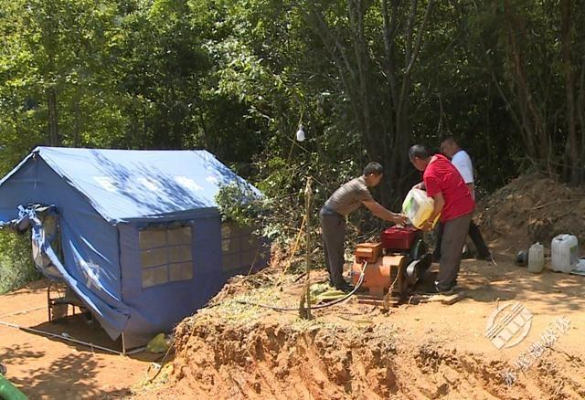 车埠镇马坡村党支部副书记余林明:“主要是两个水系,一个是从金潭水库引水,另一个从车埠陆水河丁家坪段引水,现在我们组织村民24小时不间断地用发电机从金潭水库抽水过来,解决当前的燃眉之急。”