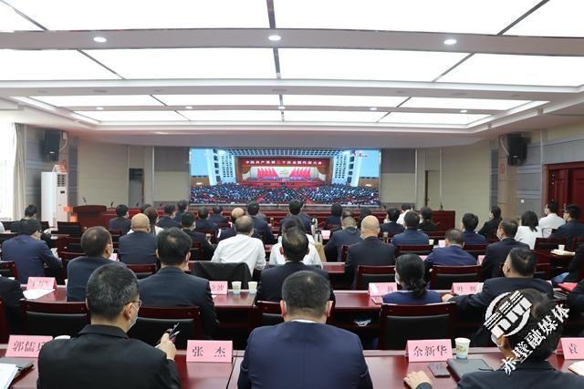 市委书记董方平,市委副书记、市长葛军,市委副书记、政法委书记刘珈,市人大常委会主任叶文华,市政协主席宋慧宇等市“四大家”领导与机关干部一道,集中收听收看党的二十大开幕盛况,聚精会神地聆听习近平同志所作的报告,并认真记录报告的有关内容。