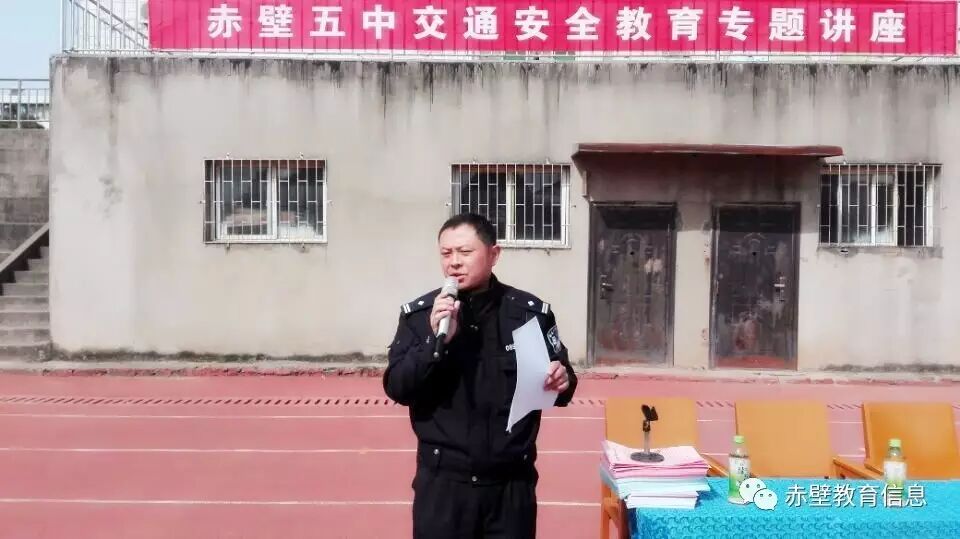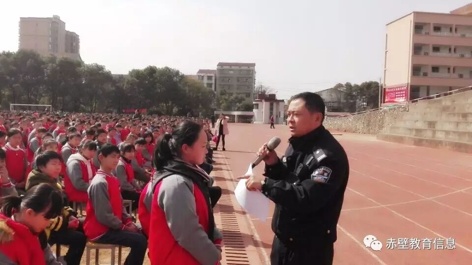 3月1日,赤壁市第五初级中学、第二实验小学邀请市赤马港交警中队,为学生上一堂生动的交通安全教育课,提高学生们的交通安全意识和自我保护意识。