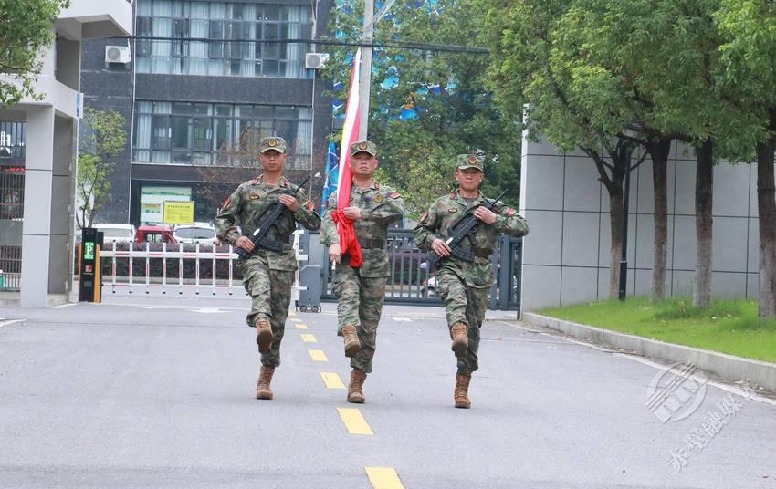 上午8时许,参加升国旗仪式的全体人员整齐列队,仪容严整。伴随指挥官一声令下,国旗护卫队员迈着铿锵有力的步伐,阔步走向升旗台。