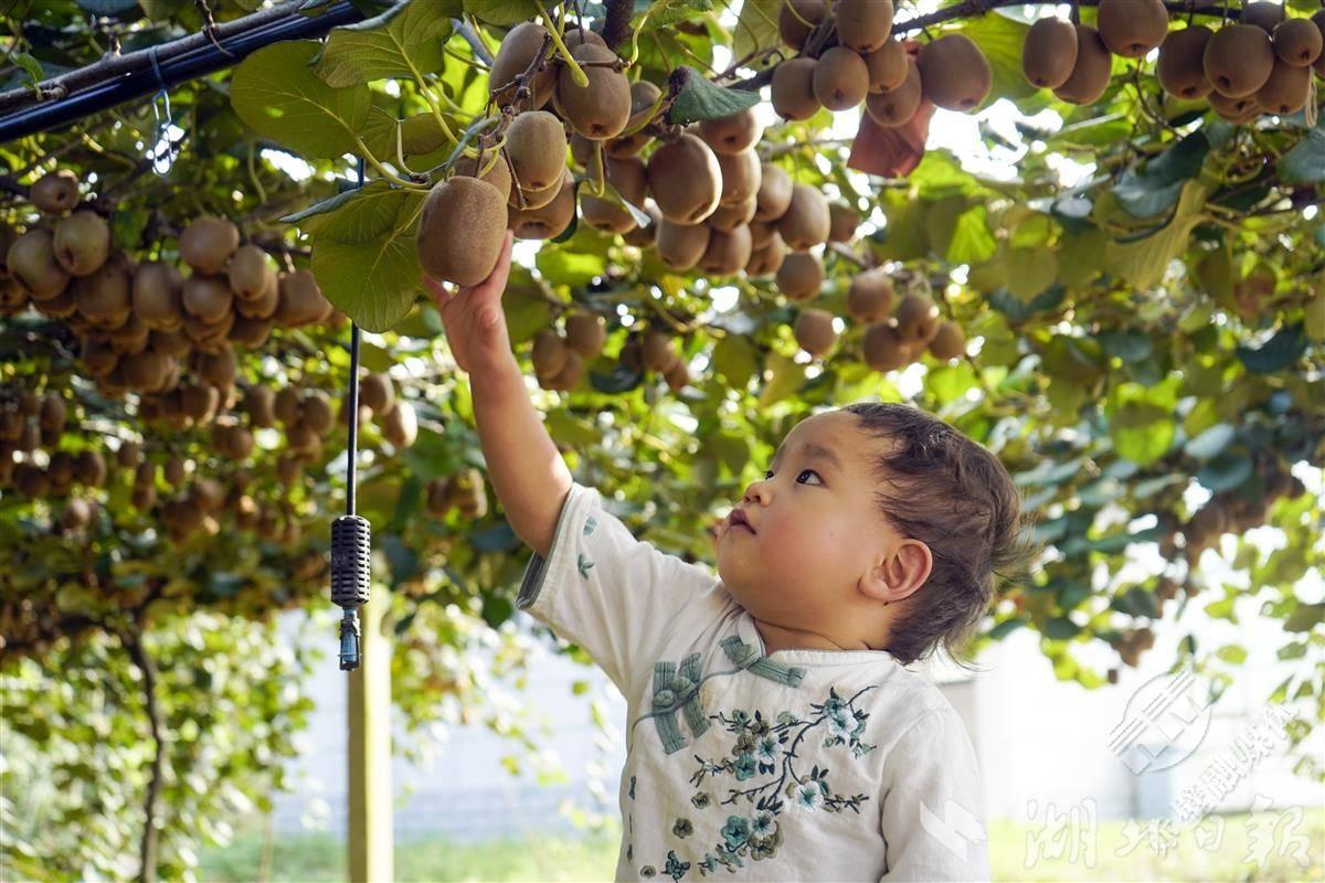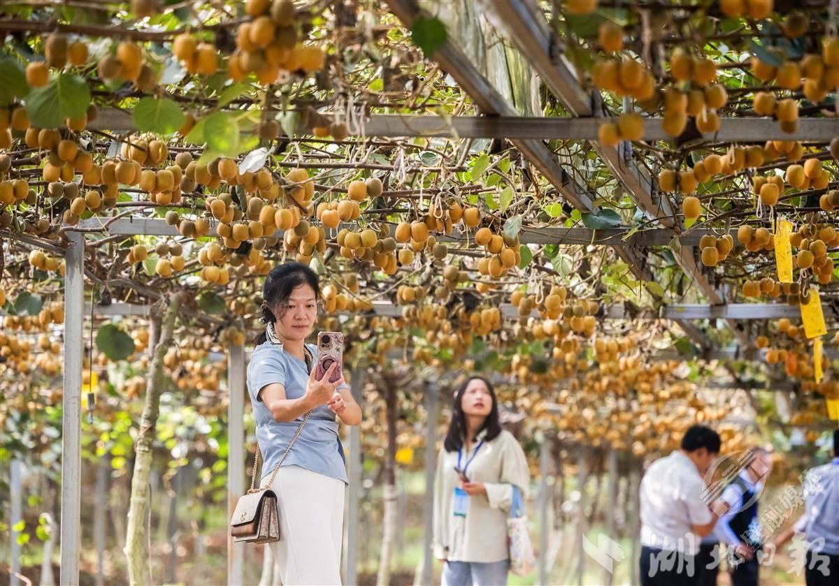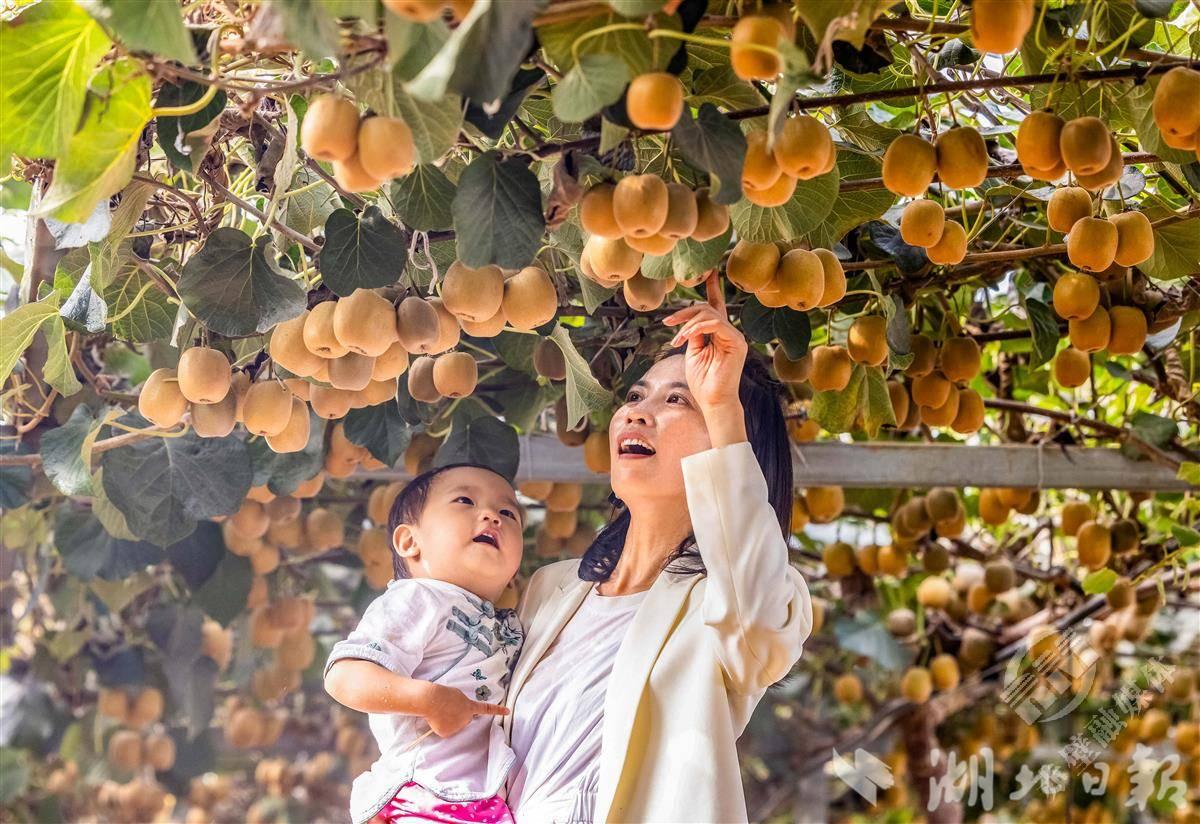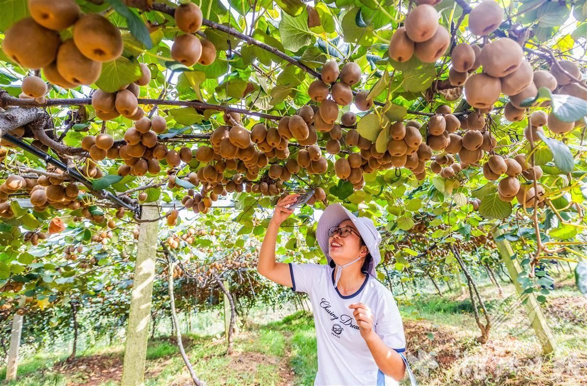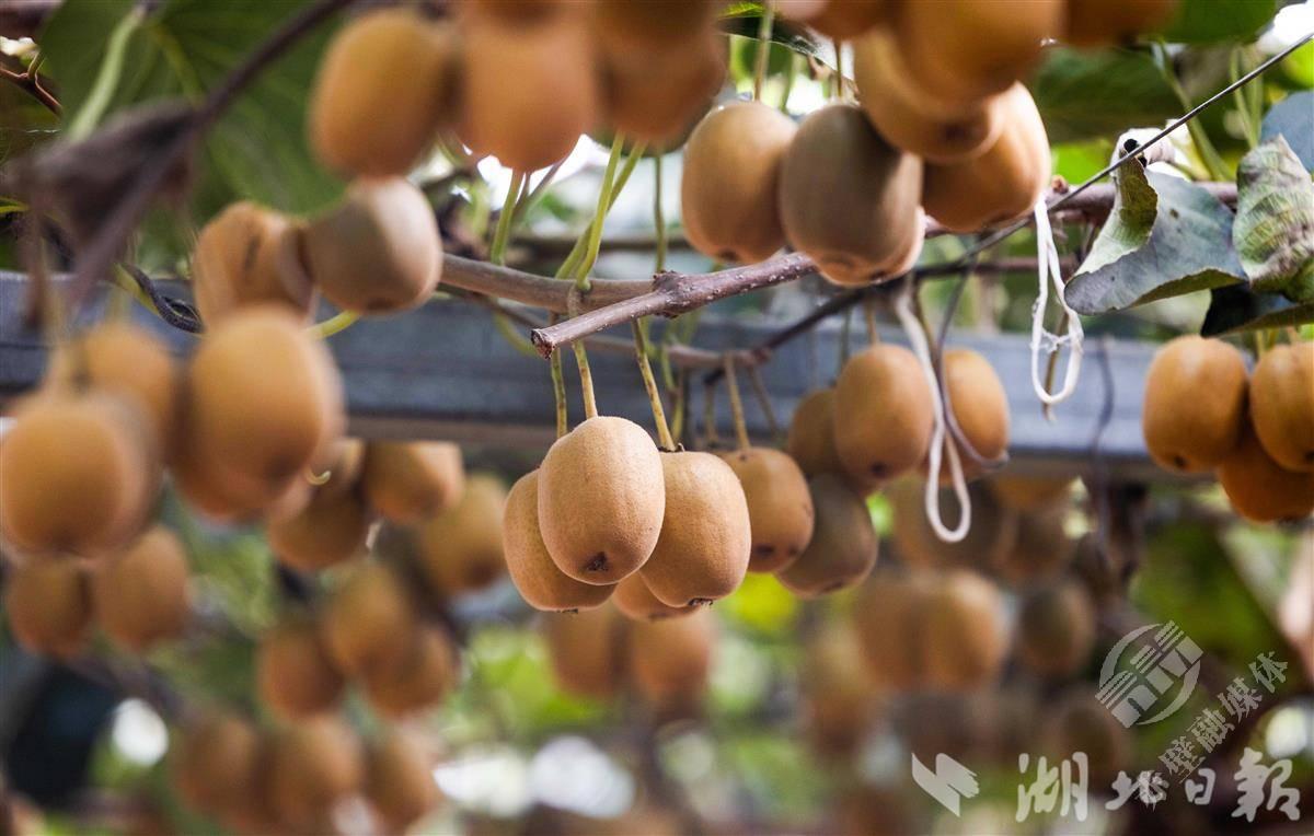 9月28日,赤壁市官塘驿镇西湾村,一串串饱满多汁的猕猴桃挂满枝头,一派丰收景象。赤壁是中华猕猴桃主要原产地、全国猕猴桃良种繁育中心基地。赤壁持续做优猕猴桃产业,目前,赤壁市猕猴桃种植面积达6.7万亩,年产值5.7亿元。(湖北日报全媒记者 薛婷 通讯员 吕志海 周蜜 摄)
