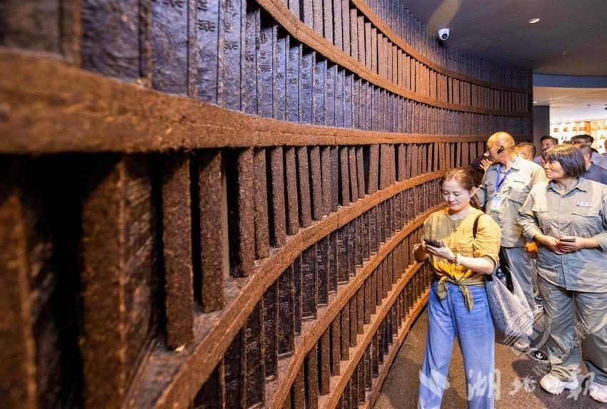9月28日,游客在赤壁羊楼洞茶文化产业园参观,深入了解赤壁青砖茶的历史文化与制作工艺。