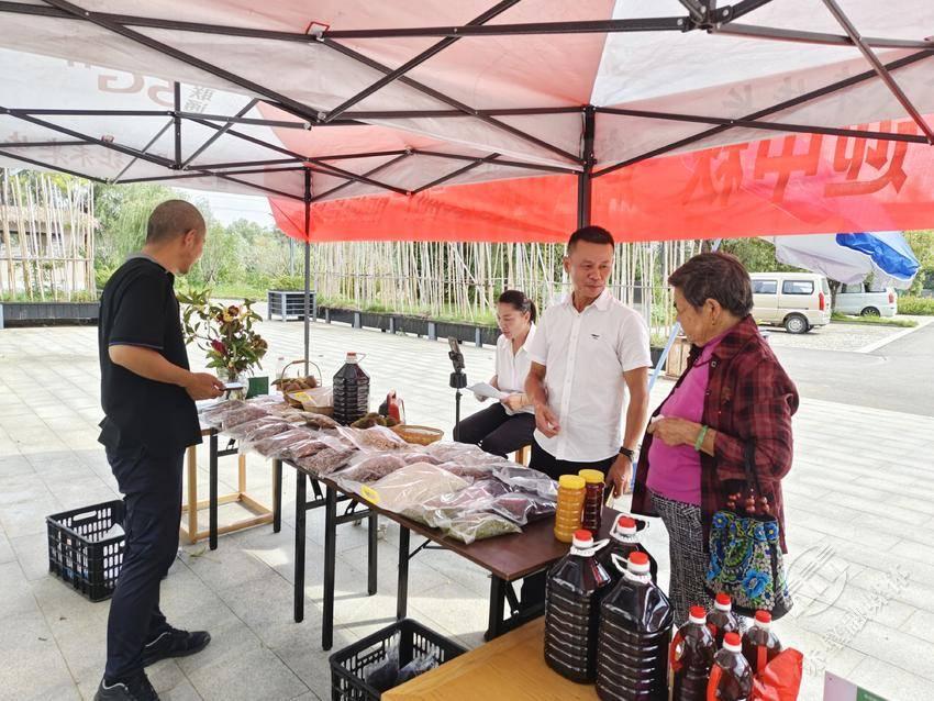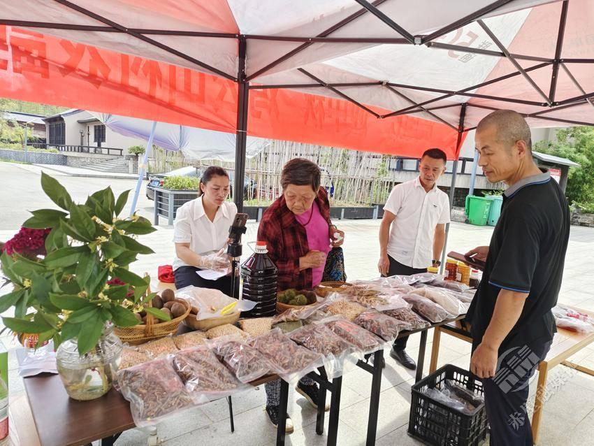 在直播镜头的背后,村干部们分工协作、默契配合。支部委员邓丽君负责农产品的分拣、包装与订单统计,将村民送来的芝麻油、菜籽油、红薯粉、猕猴桃、绿豆、板栗等农产品整齐摆上直播桌;村党总支书记、主任徐前阶则忙着搬运货物,并为前来现场选购的游客介绍打包产品,直播现场热闹有序。