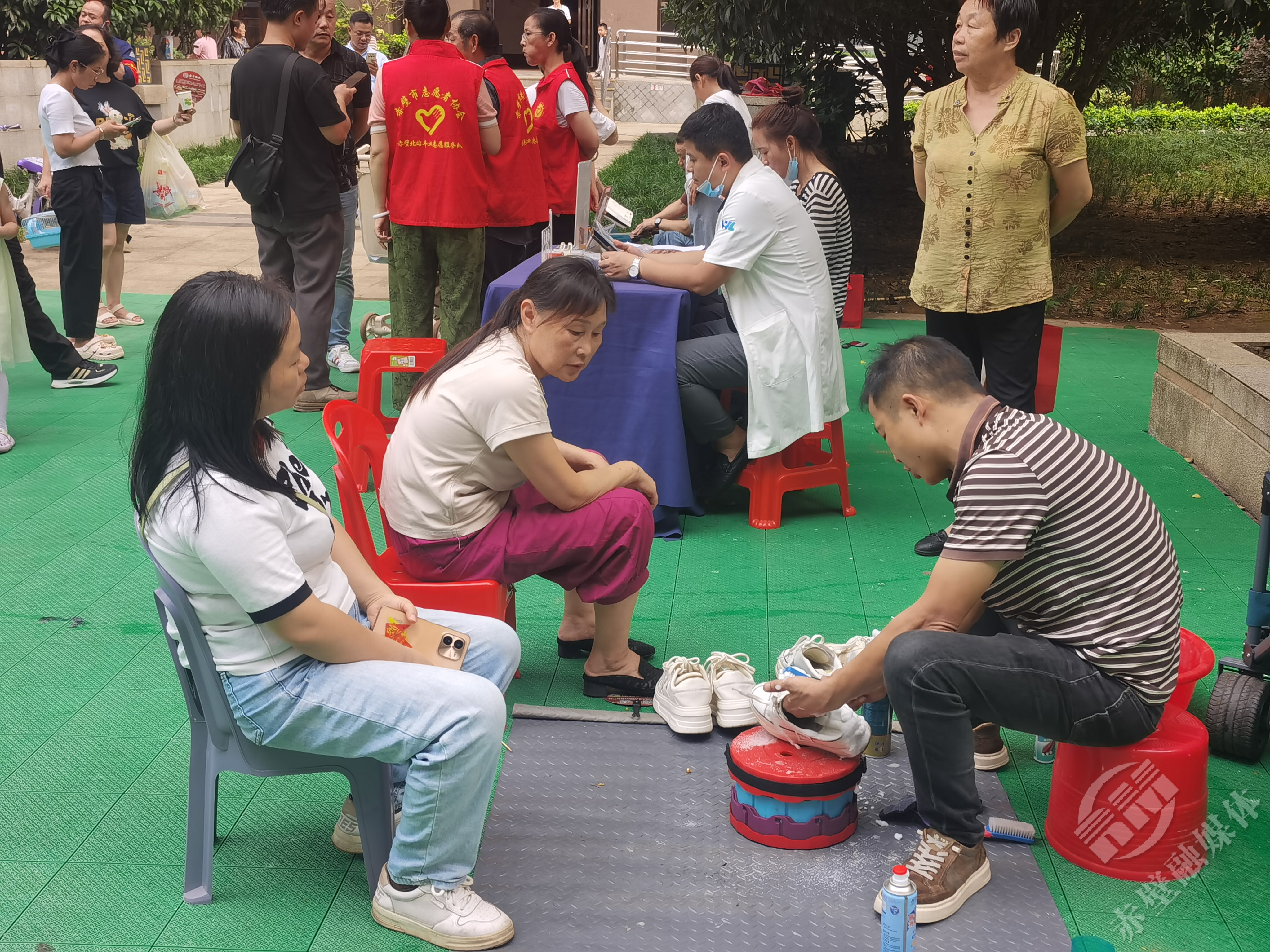 文艺演出的余温未散,十月一日,丰业盛世小区物业又组织开展了“红色服务日”活动。一方面,帮居民磨菜刀洗地毯修电器等;一方面上门看望孤寡老人,帮老人做家庭卫生并查水电安全。同时,邀请医务人员来小区开展“健康服务进小区,关爱行动暖人心”健康义诊活动。六点半开始,播放公益电影《中国营长》,为观影的小朋友免费提供烤肠、爆米花等零食。小广场上,也是人头攒动,盛况空前。