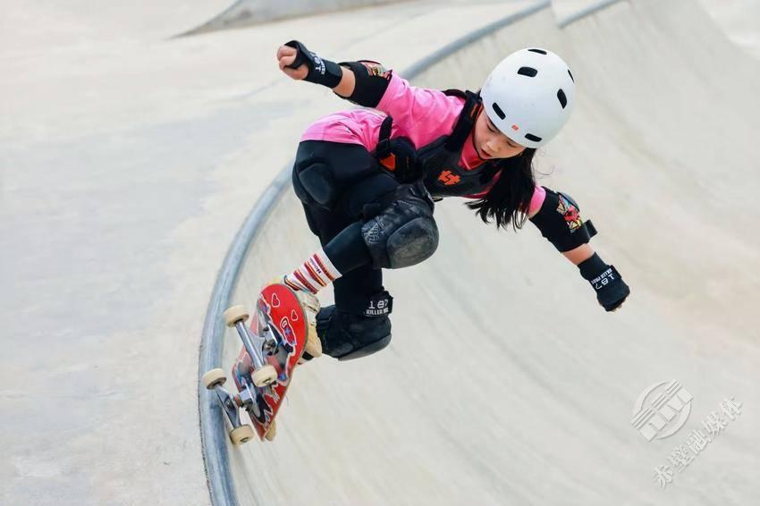 2025湖北省青少年滑板锦标赛由湖北省体育局主办,全省共有16支代表队184名运动员参赛,张沐橙凭借利落的动作与稳定的发挥脱颖而出。“双料新星”的成绩背后,藏着无数个与滑板为伴的清晨与黄昏。训练场上,摔倒又爬起是她的日常,为了精进一个腾空动作,她反复练习上百次,直到滑板如身体延伸般听话。