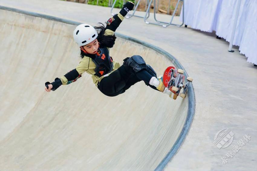 张沐橙五岁开始学习滑板运动,爸爸张惊亚起初只是抱着试试的态度,却不承想正是勇敢向前的这一步,让小丫头深深爱上了滑板的速度与激情。
