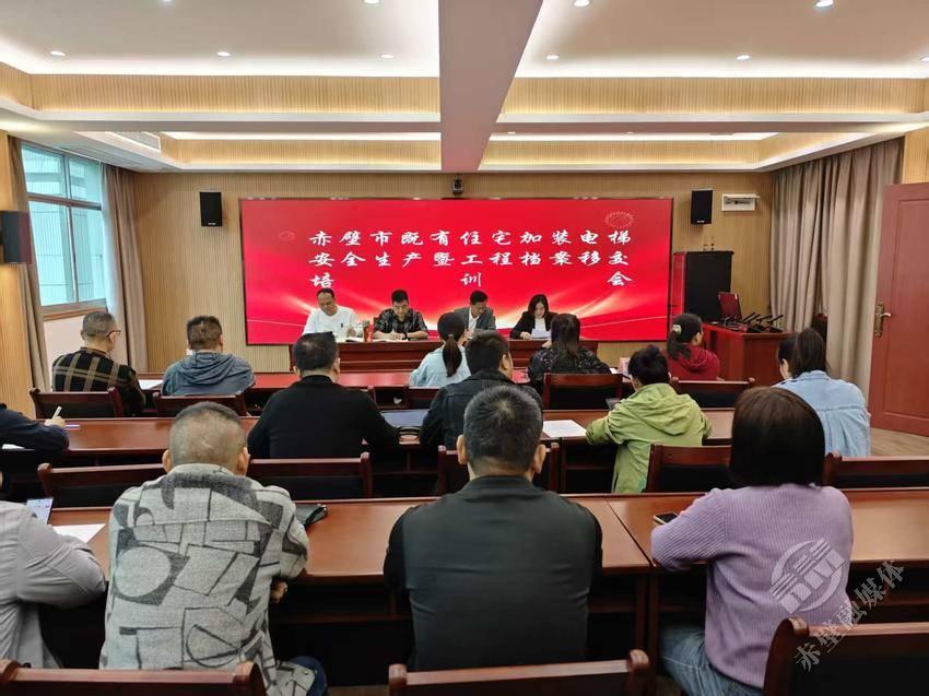 培训听取了赤壁市2025年既有住宅加装电梯工作汇报;集中学习了《湖北省既有住宅加装电梯工程档案移交指南》,明确了竣工验收后文件分类、保管期限、移交流程等要求,确保参会人员全面掌握档案移交规范。