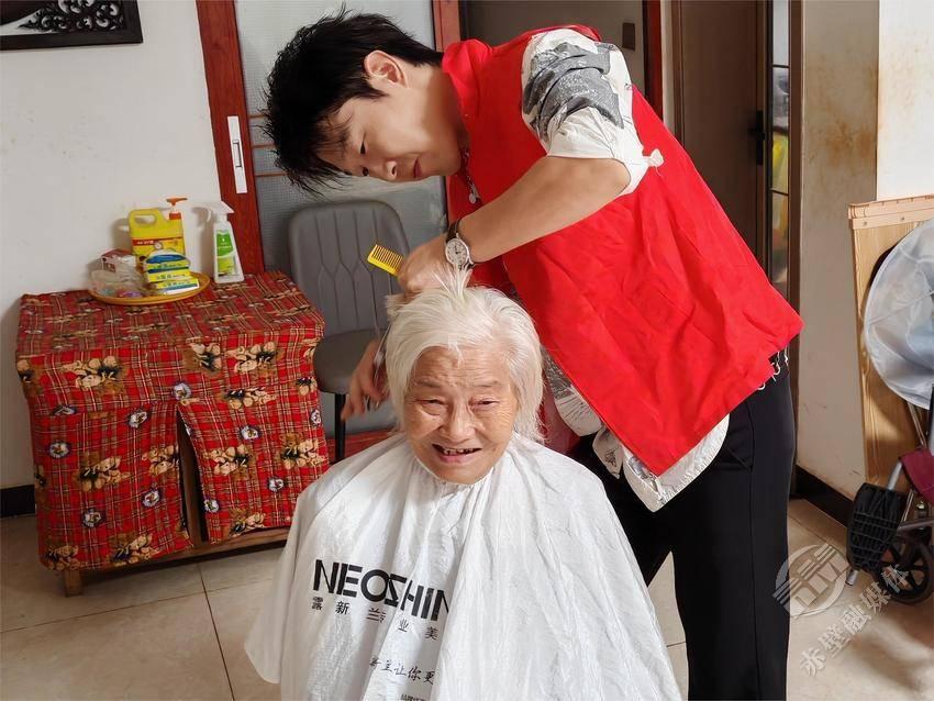 在老人家中,理发组志愿者耐心询问老人的发型喜好,一边细致地为老人修剪头发,一边与老人亲切拉家常,详细了解他们的生活近况。“你们来得太及时了,我正发愁没办法出去剪头发!”看着镜子里清爽整齐的新发型,严阿姨脸上露出了满意的笑容,不住地向志愿者道谢。