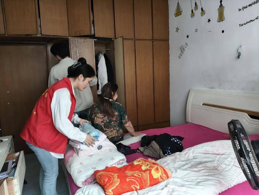 负责卫生清扫的志愿者则忙着为有需要的独居老人清扫客厅、整理房间。在整理衣物时,志愿者发现老人衣柜顶层堆着厚被褥,主动询问:“阿姨,现在天凉了,厚被子要不要拿出来换上?”“有厚被子的,就是放得太高,我够不着。”李阿姨有些不好意思地回答。话音刚落,志愿者便踮起脚取下被褥,麻利地帮老人铺好床,还笑着说:“阿姨您坐着歇着,这点活儿我们来!”看着焕然一新的家,李阿姨拉着志愿者的手感动不已:“孩子们,真是辛苦你们了,把我家打扫得这么干净,还陪我说话,你们就像我的亲人一样。”