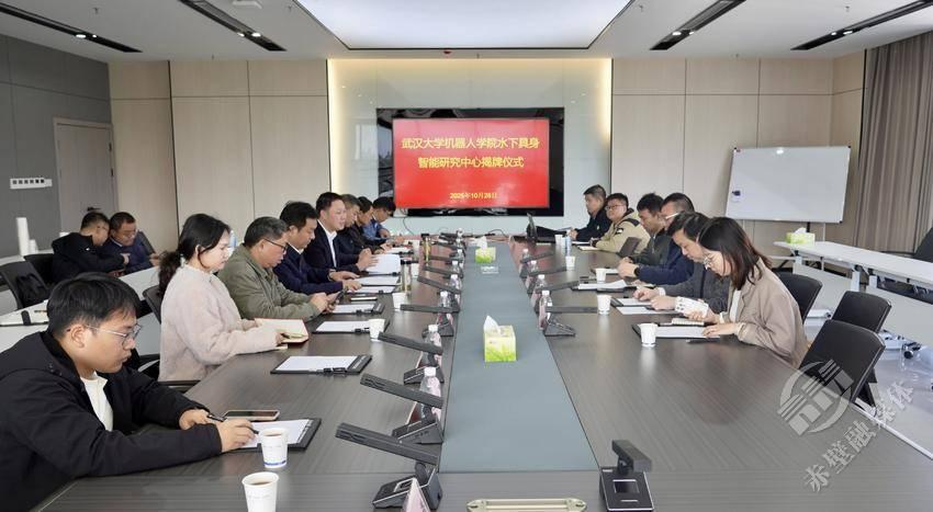 10月28日,武汉大学机器人学院水下具身智能研究中心揭牌仪式在咸宁中试谷(赤壁)基地举行。武汉大学机器人学院党委副书记陈洪波,赤壁市委副书记、市长彭光平,市委常委、市委办公室主任别华中参加。