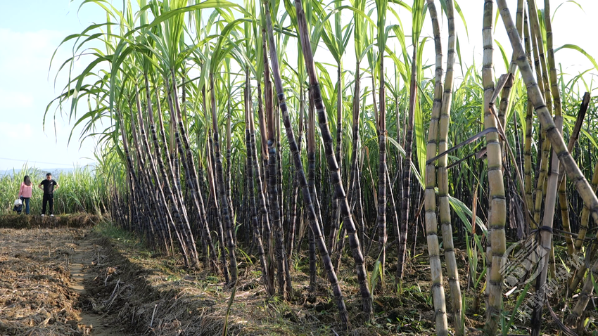 11月4日,记者走进白石村甘蔗种植园看到,成片成林的甘蔗在秋日里散发着成熟的甜蜜诱惑,一根根节长粗壮挺拔而立,成为一道“甜蜜风景”。