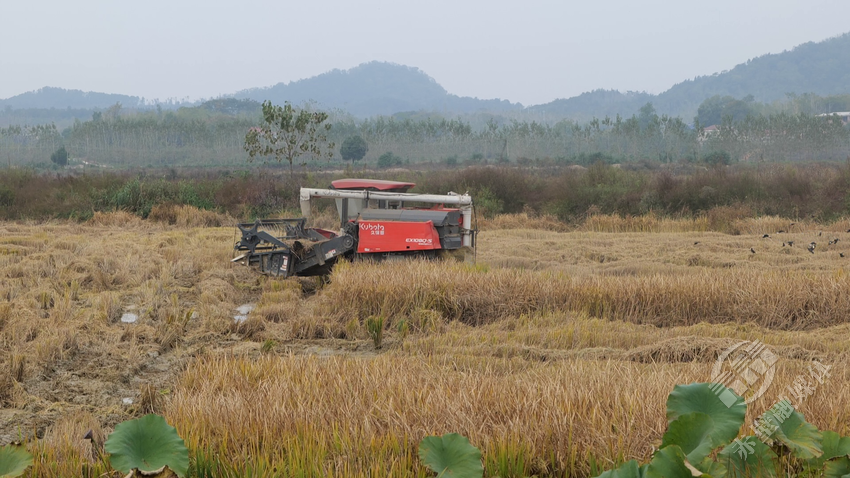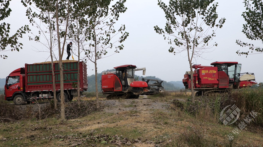 11月3日,记者来到余家桥乡月星山村看到,两台收割机穿梭在稻田之间,伴随着机械引擎的轰鸣声,沉甸甸的稻穗被收割、脱粒、筛选,一幅“机械化助力丰产增收”的丰收画卷正浓。