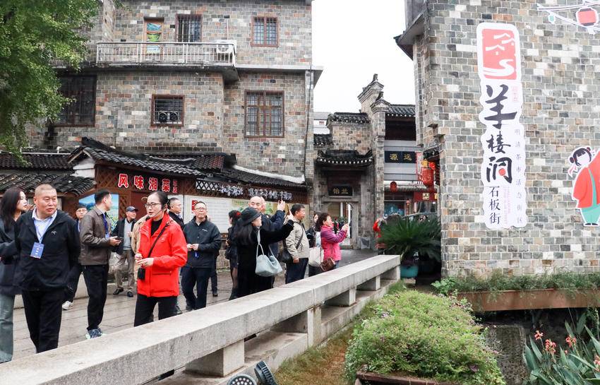 11月10日,2025咸宁赤壁青砖茶产业发展大会开幕后,部分与会嘉宾集中前往羊楼洞茶文化生态产业园、湖北省赵李桥茶厂有限责任公司、羊楼洞古镇等地参观,深入了解赤壁青砖茶的传统制作技艺传承、现代化生产加工流程以及文旅融合发展模式,感受赤壁茶产业蓬勃发展和独特魅力。