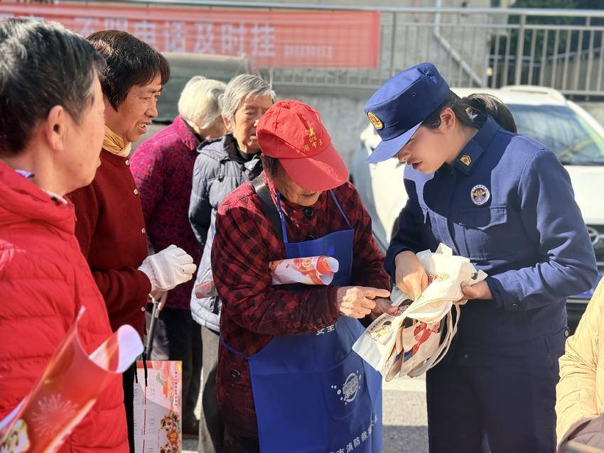 “楼道里不要堆积纸箱、摆放闲置物品。”活动中,宣传小分队用通俗易懂的语言向居民们耐心讲解家庭用火、用电、用气的安全注意事项,强调“楼道堆放杂物”“卧床吸烟”“用火用电”“电动车违规充电停放”“违规占用消防车通道”等常见隐患的危险性,并以有奖问答的形式对居民关心的“一旦发生火灾如何正确报警”“如何扑救初期火灾”“身处火场如何有效逃生”等问题进行一一解答。同时,宣传小分队向居民发放消防年画、消防主题围裙和手提袋等实用宣传品,让消防安全知识融入日常生活。
