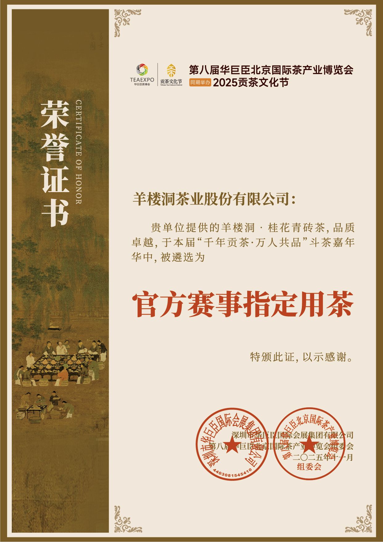 在大会开幕式表彰环节,赤壁两家茶企品牌——羊楼洞茶业股份公司“羊楼洞”品牌、湖北省赵李桥茶厂有限公司“川”字品牌,与七家黑茶头部企业共同获评“2025年度中国黑茶企业代表品牌”。