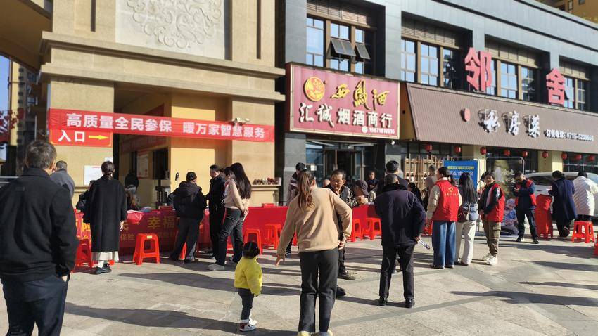 12月3日,赤马港街道北站社区新领地小区南门广场热闹非凡,2025年社保进万家暨两险征缴便民活动在此举行。市人社局、赤马港街道、税务局、医保局及社保卡合作银行联合发力,将服务阵地搬到居民“家门口”,为群众提供一站式社保服务与反诈宣传。