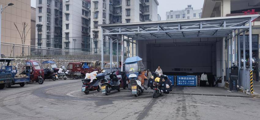 市场大门口机动车辆、电动车乱停乱放现象严重;地下一层通道口电动车随意停放,甚至遮挡了消防通道;市场后面三轮车、电动车随意停在两侧,造成通行困难,且地面存在积水,杂物堆放,有人牵绳晾晒物品,还有流浪狗出没,影响了市场环境整洁度和市民购物体验。