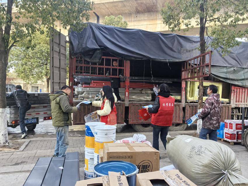 12月16日,赤壁市蒲圻街道社区戒毒康复中心禁毒社工深入辖区寄递物流企业,开展禁毒宣传活动,为行业从业人员敲响禁毒警钟,全力织密物流“运输线”防毒网络。
