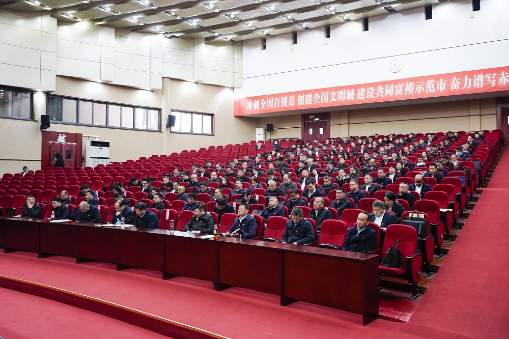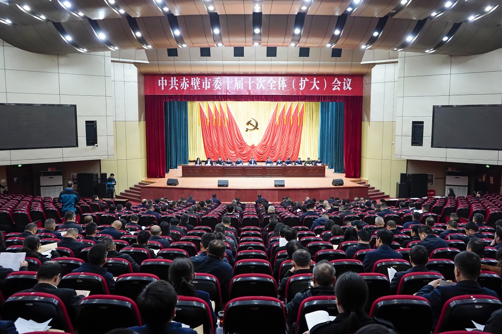 12月19日,中国共产党赤壁市第十届委员会第十次全体会议在市会议中心举行。全会深入学习贯彻党的二十届四中全会精神和习近平总书记考察湖北重要讲话精神,认真落实省委十二届十一次全会、咸宁市委六届十一次全会精神,研究关于制定全市国民经济和社会发展第十五个五年规划的建议,动员全市上下凝心聚力冲刺全国百强县,奋力谱写中国式现代化赤壁篇章。