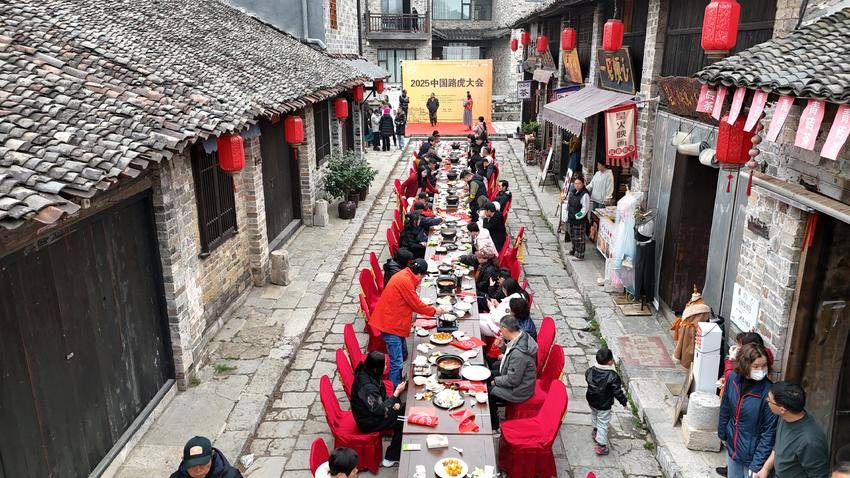 12月20日,2025中国路虎大会举办特色长桌宴,参与活动的路虎车主们齐聚千年茶马古道源头羊楼洞,体验赤壁青砖茶文化,品尝地方特色美食。