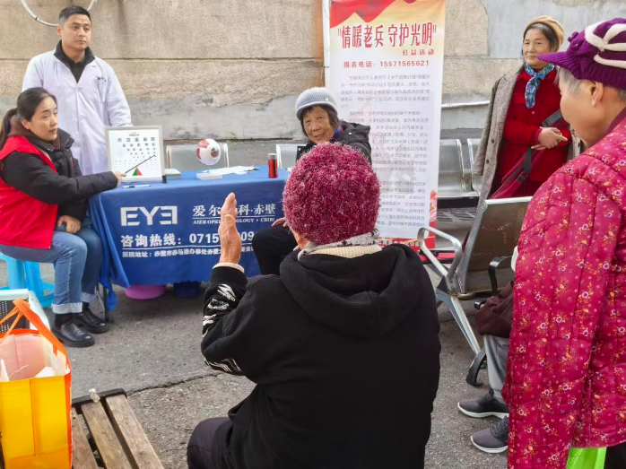12月22日,赤壁市蒲圻街道北街社区联合市退役军人事务局、眼科医院,在辖区小区院内开展免费眼健康体检活动,将专业医疗服务送到居民“家门口”。