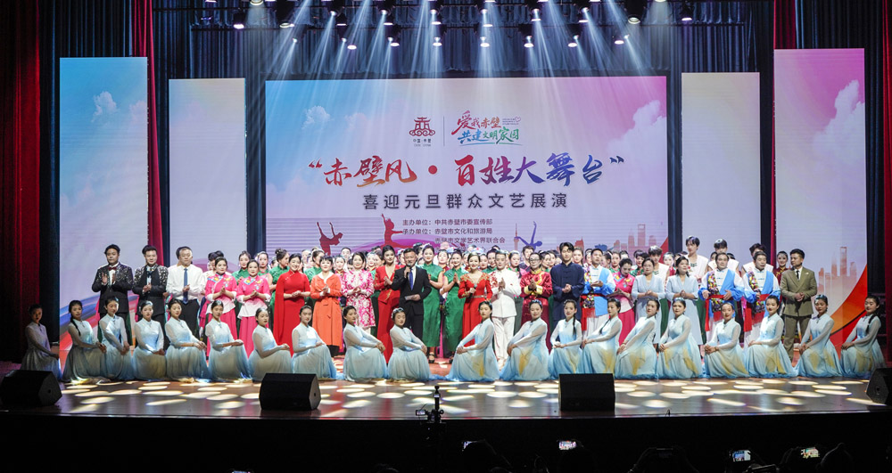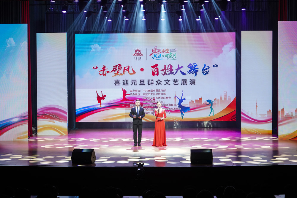 12月25日,赤壁市举办“爱我赤壁 共建文明家园”——“赤壁风·百姓大舞台”喜迎元旦群众文艺展演活动,通过线下表演与线上直播联动形式,与全市人民共迎新年、共庆元旦佳节。