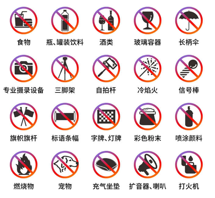 入场需接受安全检查,严禁携带国家明文规定的可能对公共秩序造成影响或对公共安全造成威胁的物品进入活动现场。
