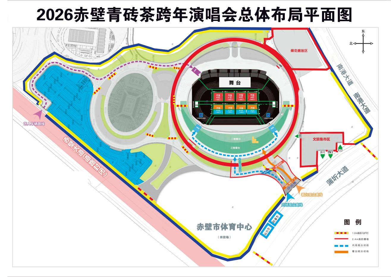赤壁青砖茶跨年之夜演唱会将于2025年12月31日晚在赤壁市体育中心举行,为确保演唱会活动期间的道路交通安全和畅通,根据《中华人民共和国道路交通安全法》有关规定,决定对赤壁市体育中心周边区域部分道路实行临时交通管制,现通告如下: