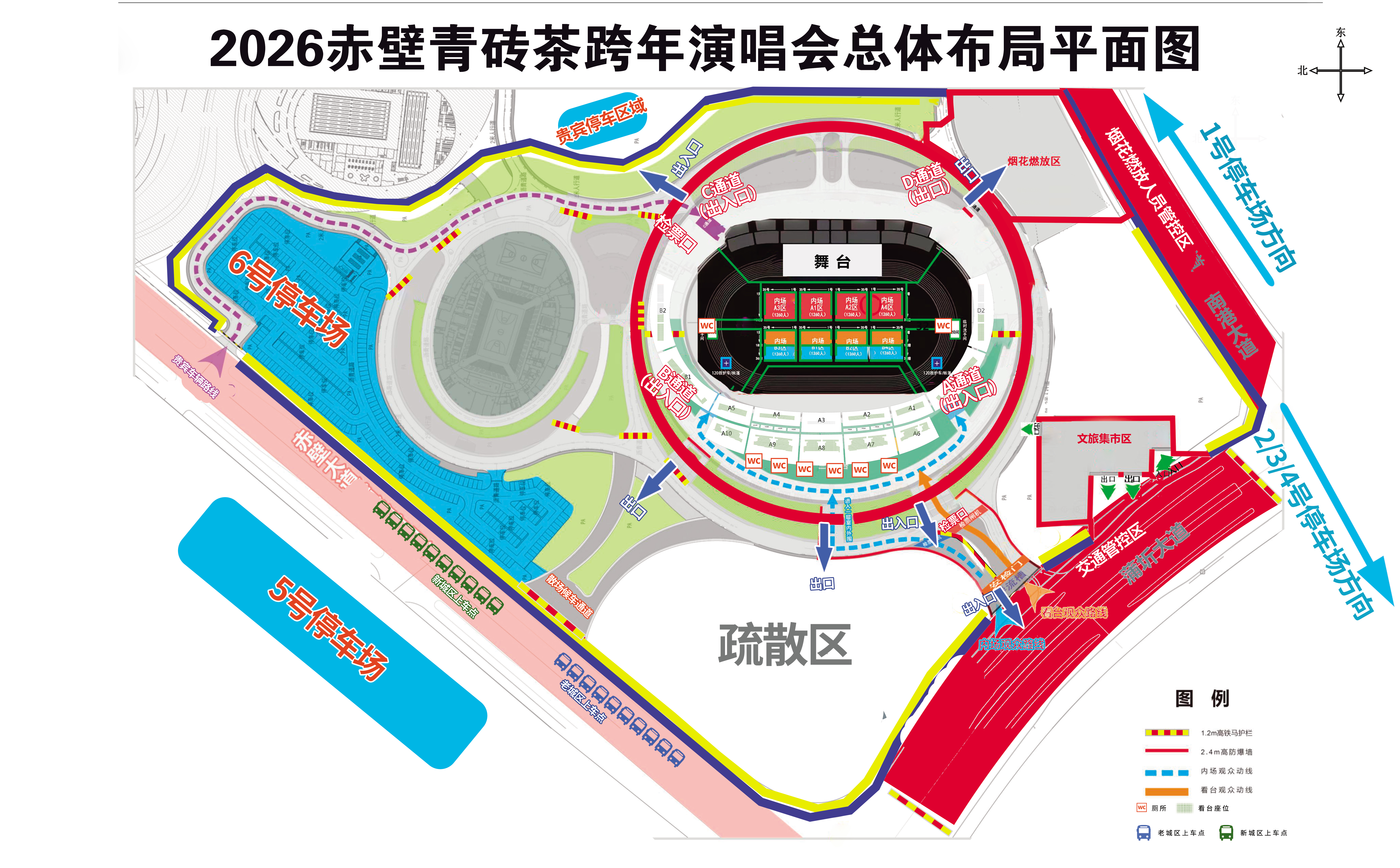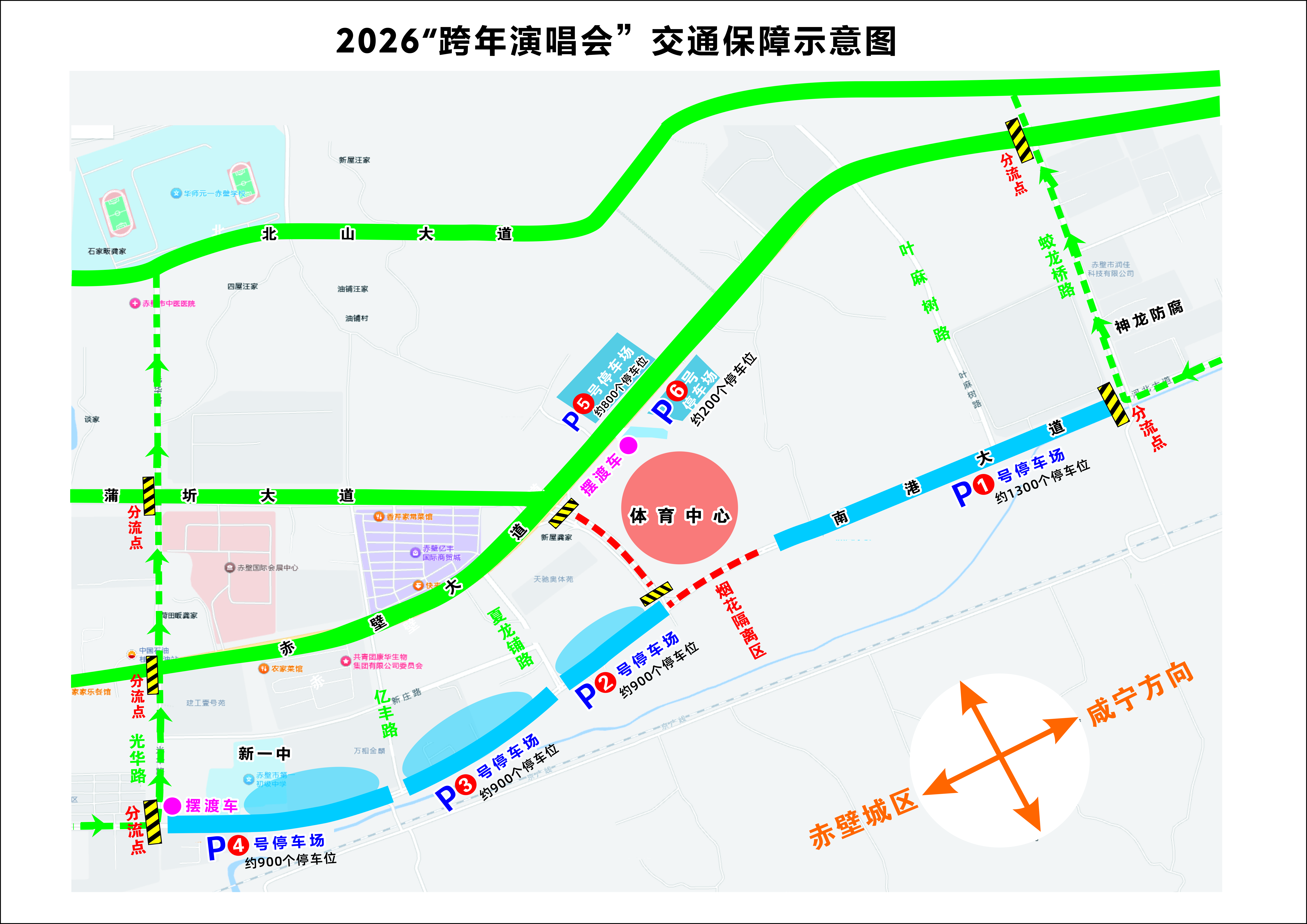 为确保演唱会活动期间的道路交通安全和畅通,根据《中华人民共和国道路交通安全法》有关规定,将对赤壁市体育中心周边区域部分道路实行临时交通管制,具体如下: