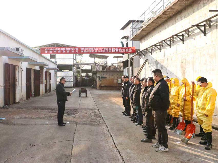 12月26日,咸宁市生态环境局赤壁市分局、湖北赤壁高新技术产业园区、赤壁市应急管理局在赤壁祥源特种布有限公司开展环境污染事故应急演练,检验应急预案可行性,提升多部门协同处置突发环境事件的能力。