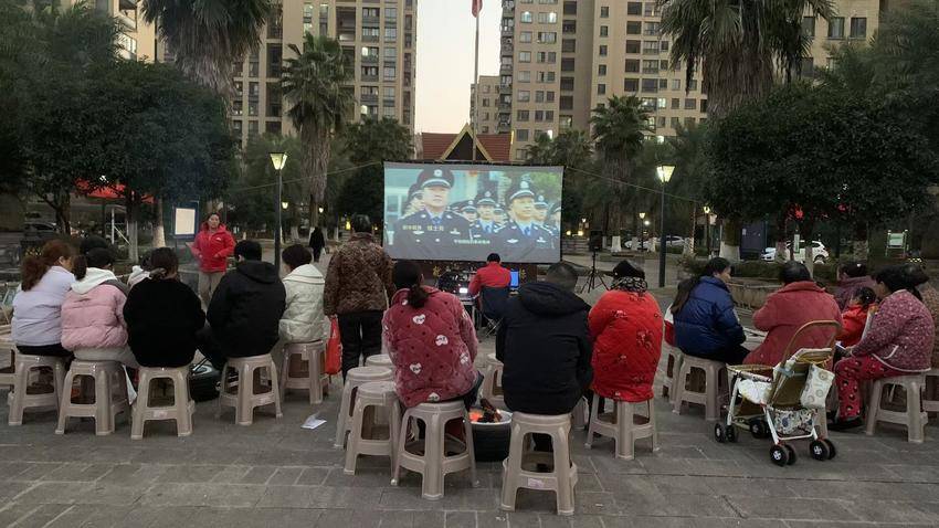 当晚6时,观影活动准时开启。随着影片剧情推进,居民们沉浸其中,时而低声交流剧情,时而共同欢笑,光影交织间,邻里距离悄然拉近。