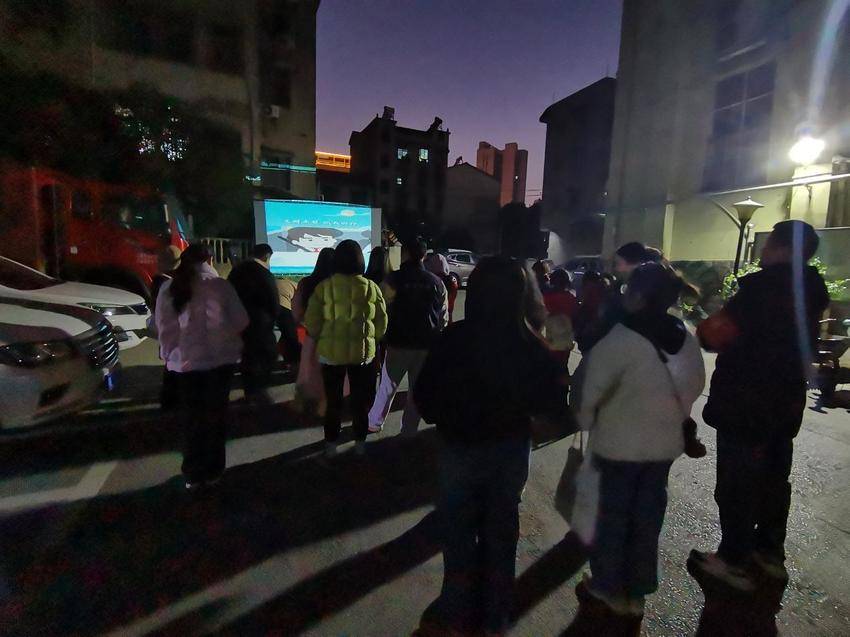 1月7日晚,赤壁市赤马港街道大桥社区在凯丰新村小区开展“电影进小区”主题活动,组织居民齐聚观影、共话文明,让大家在光影浸润中感受文化魅力,在互动交流中传递文明新风。