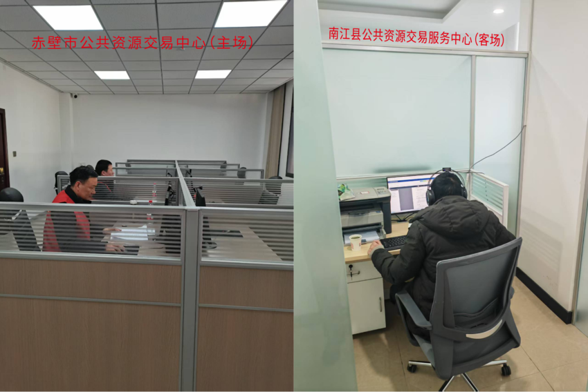 技术赋能是跨省远程异地评标顺利实施的核心支撑,为顺利推进此次跨省远程异地评标新实践,赤壁市公共资源交易中心多方联系跨省远程评标客场,最终确定为四川省南江县公共资源交易服务中心。双方交易中心、系统平台和软件公司前期经过多方沟通接洽、技术对接、调试运行等,最终攻破技术壁垒,打破地域限制,顺利完成该次大胆创新实践。