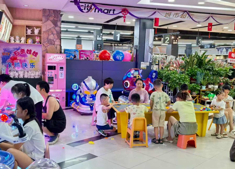 融合“夜购创新”,城市超市专门建设“儿童乐园”,为家庭客群提供夜间购物与亲子娱乐一体化服务;同时及时引入沉浸式剧本杀、自助KTV、自助桌球、大型网吧等“夜娱业态”,全方位满足消费者夜间休闲娱乐需求。要是逛累了,中青旅山水时尚酒店就在街区里,就近入住也十分方便。