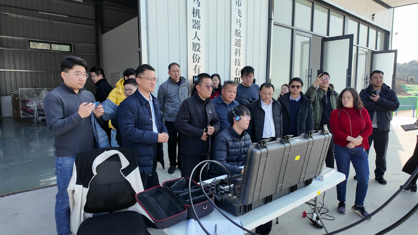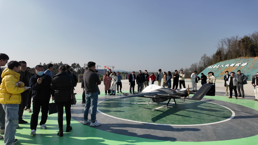 在赤壁中试谷·智能无人系统测试基地,考察团一行实地参观了天文观测塔、测试道路、航空航天飞行器和先进载荷研发生产基地等核心设施,学习基地整体规划、建设进展、功能布局以及在智能无人系统测试领域的特色与优势;听取龚健雅院士团队专家学者工作介绍,了解赤壁在发展低空经济方面的战略规划、政策支持以及依托中试谷基地所取得的成效,学习基地在吸引高端人才、孵化创新企业、推动产学研融合等方面的成功经验。