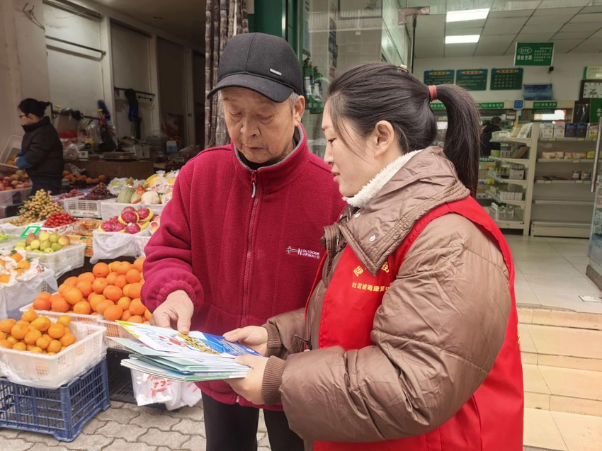 1月14日,赤壁市陆水湖街道综治中心禁毒志愿者在辖区开展禁毒宣传活动,进一步提升辖区居民禁毒意识,增强群众毒品防范能力。