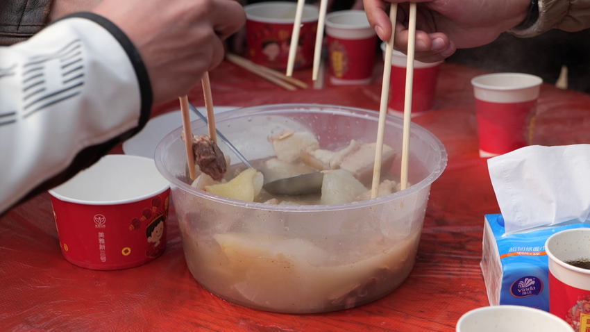 咸安游客雷敏:我们都是从咸安过来的,我们这一桌的朋友,都觉得今天这个刨猪宴的猪肉萝卜汤非常的甜,非常的鲜美好吃,现场的氛围非常好,现场应该是有几千人。如果下次赤壁还举办这种活动,我一定还带家人朋友一起过来。