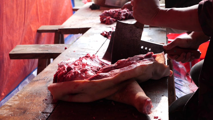 为了筹备刨猪宴活动,发起人陈亮提前踩点场地,宰杀了自家几头年猪、采购了众多本地食材,准备了60多桌,要把这场民俗盛宴办成农文旅融合活动。
