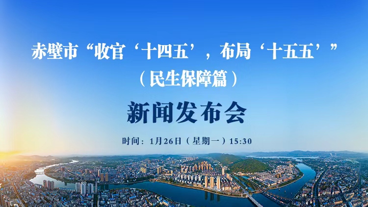 赤壁市“收官‘十四五’,布局‘十五五’” 系列主题新闻发布会(民生保障篇)将于1月26日(星期一)15:30在市会议中心2号会议室举行,云上赤壁将全程进行直播,敬请观看!