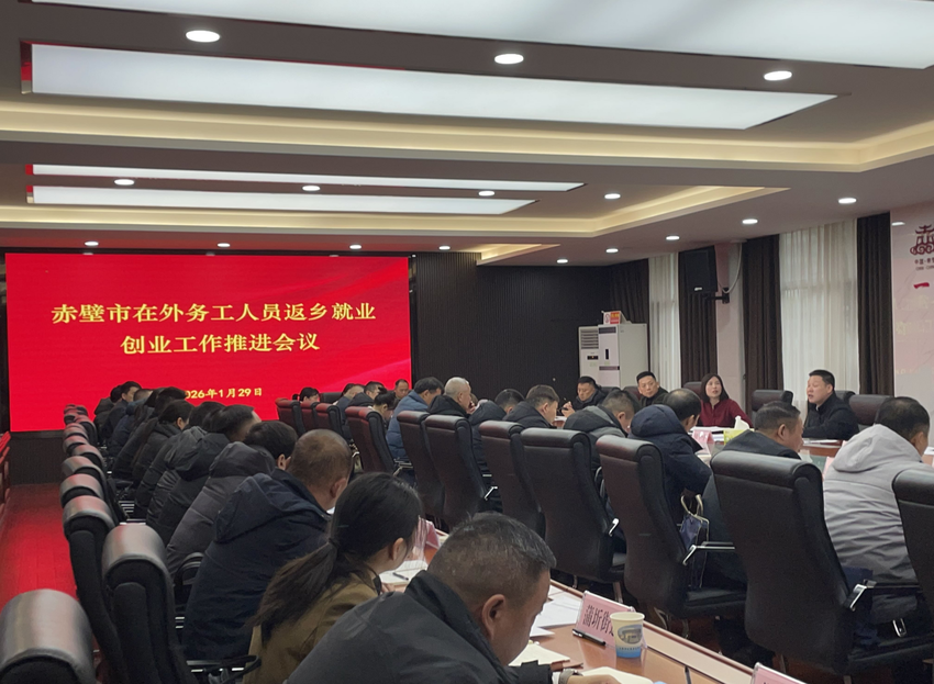 1月29日,赤壁市召开在外务工人员返乡就业创业工作推进会,总结前阶段返乡就业创业工作推进情况,安排部署春节期间重点工作任务。