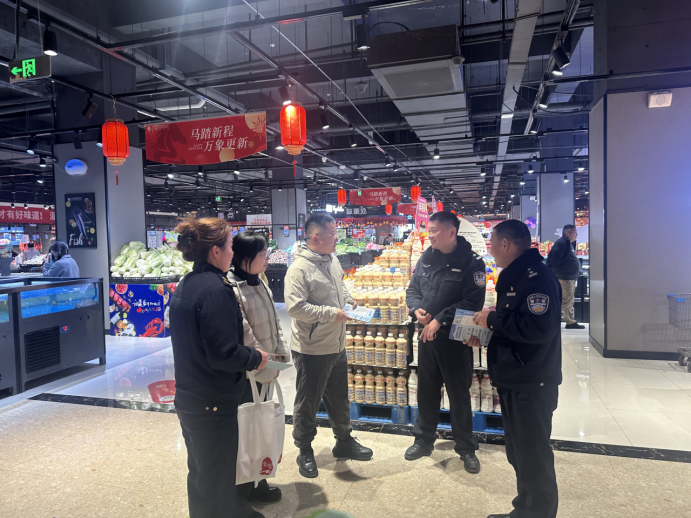 近日,赤壁市蒲圻街道综治中心联合市公安局刑侦大队、蒲圻派出所、市市场监督管理局等单位,深入辖区摩尔城、三国商业城等人流密集商圈,在盛百客超市、家联超市等主要商业场所集中开展反诈宣传活动,将防骗知识送到群众身边。